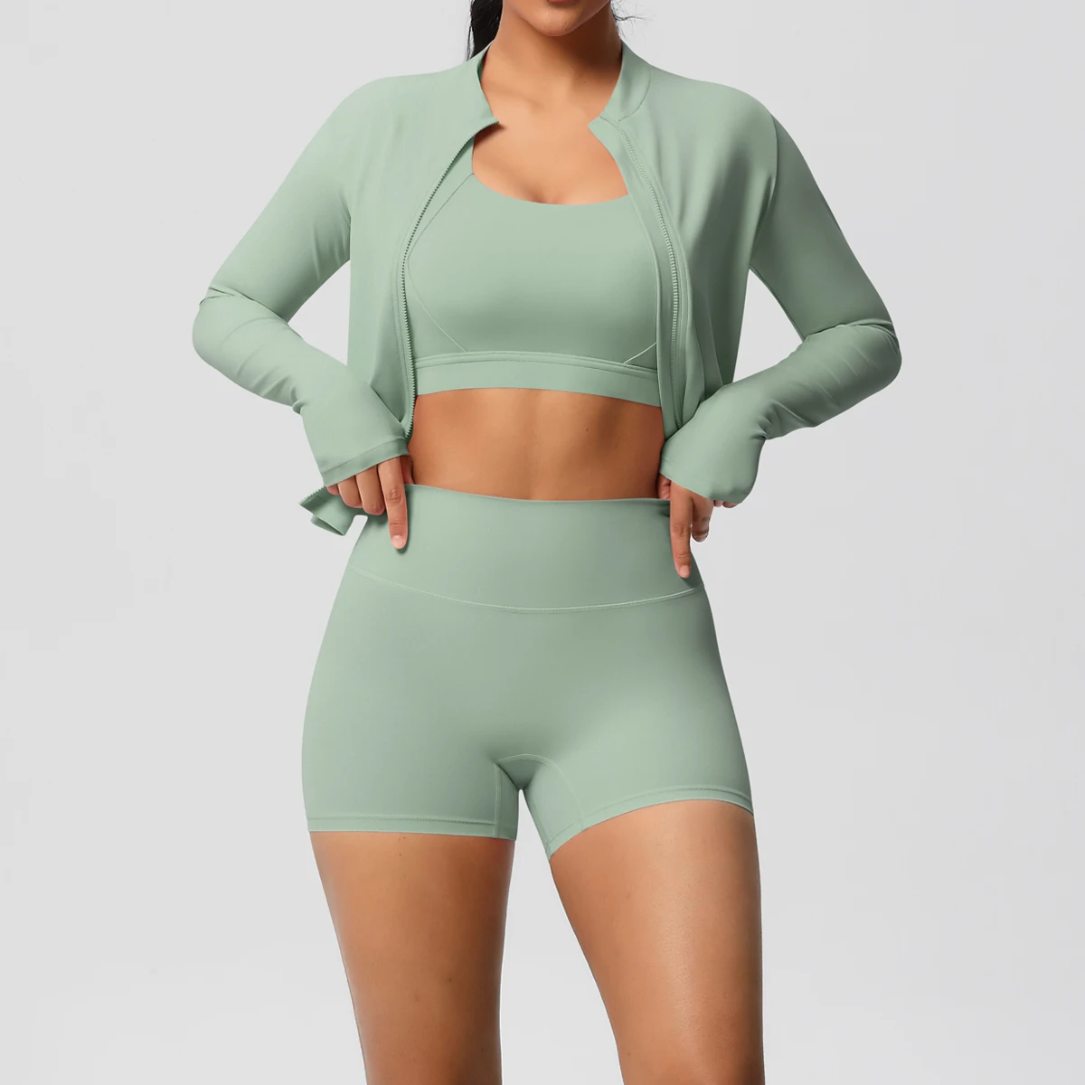 3PCS Yoga Set Nude Feeling Workout Sets Women Tracksuit Gym Push Up Fitness Running Workout Sportwear Sport Bra Leggings Suit